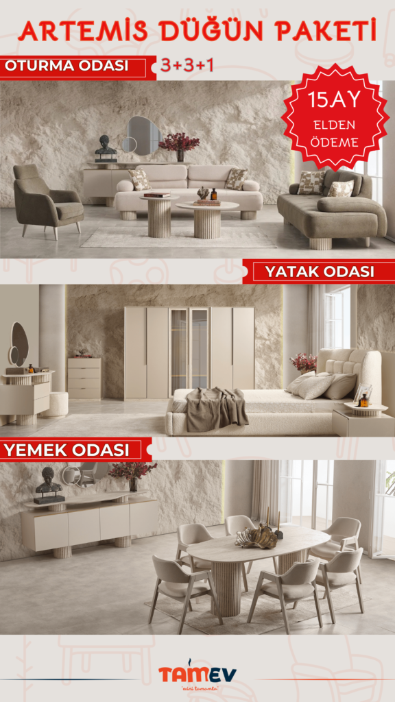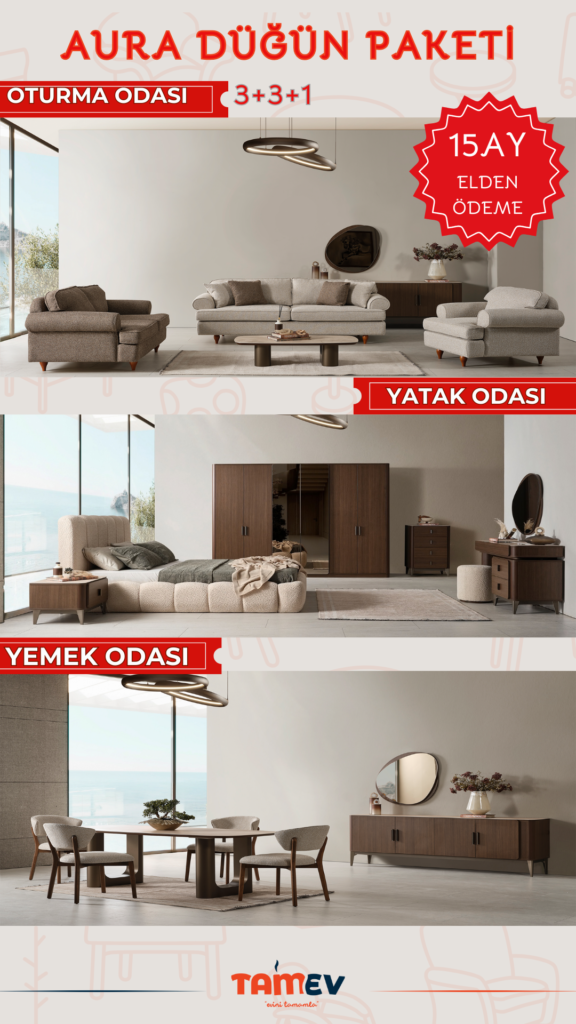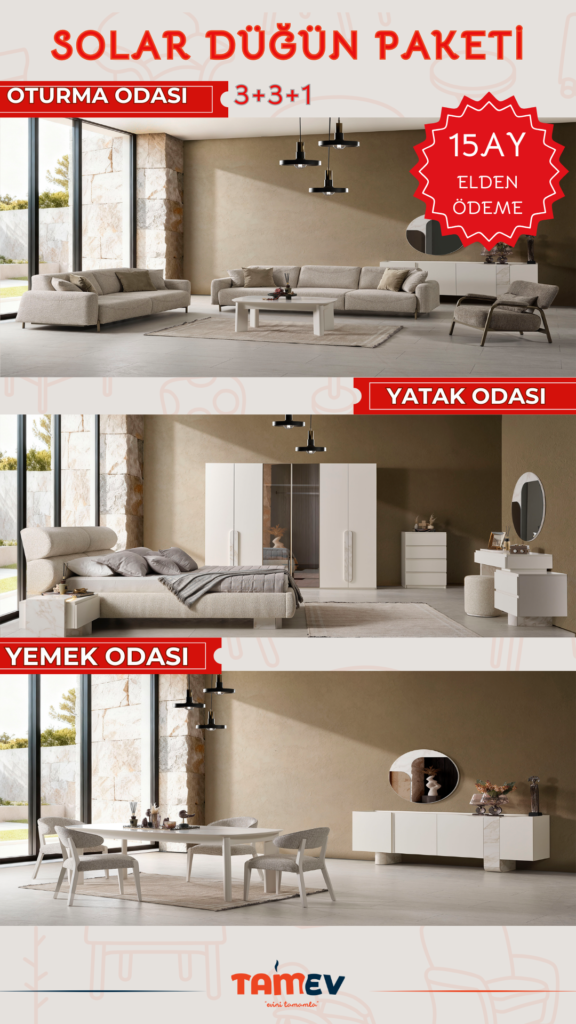 Yeni hayatınıza yumuşak geçiş yapın! Tamev’in zarif ve konforlu çizgilerle hazırladığı Soft Düğün Paketi, sade şıklığı ve işlevselliği bir araya getiriyor. Oturma odasından yatak odasına, yemek takımından aksesuar detaylarına kadar her şey sizin için özenle hazırlandı.