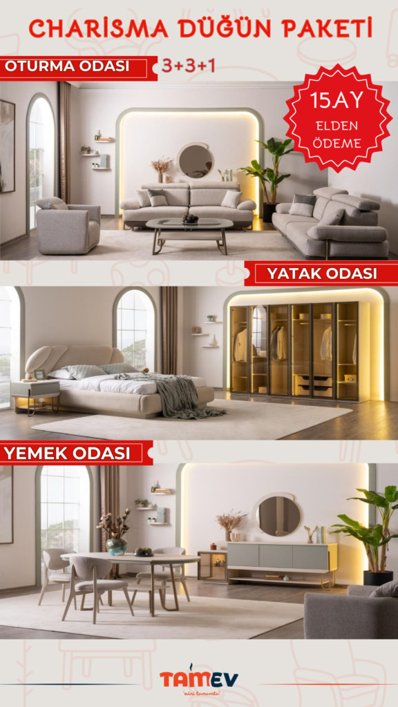 Hayatınızın en özel başlangıcına, zarif ve fonksiyonel bir dokunuş… Tamev Buse Düğün Paketi, romantik detayları, modern çizgileri ve konforlu yapısıyla yeni evinize sıcak bir yuva hissi kazandırır.